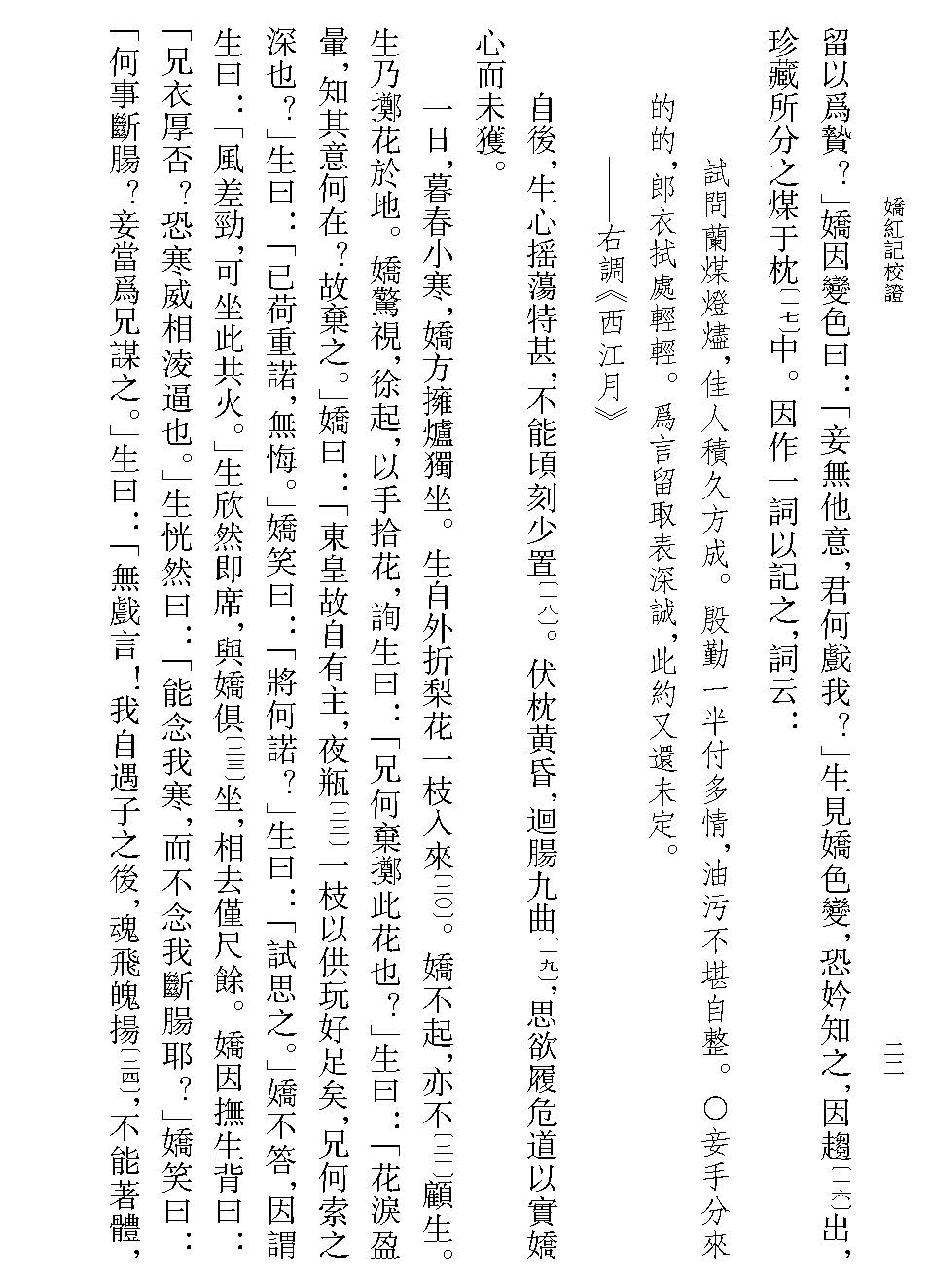 《娇红记》,我国中篇文言小说之滥觞,叙述了申纯、王娇娘缠绵悱恻的爱情悲剧,与《西厢记》合为“元代戏曲小说史上的双璧”。本书上承唐宋传奇,下启明代中篇文言传奇,并对《红楼梦》产生了深远的影响。元、明、清三朝据此改编的杂剧、传奇、京剧等数十种,其中最著者乃与汤显祖《牡丹亭》媲美的孟称舜《节义鸳鸯冢娇红记》。如此重要的文言小说,罕见点校整理本。今林莹博士点校《娇红记》,以单行本《评释娇红记》为底本,校以《艳异编》、林近阳编《燕居笔记》(林本)、何大抡编《燕居笔记》(何本)、《花阵绮言》,并参校《绣谷春容》、《风流十传》等版本,略作考辨,并附“集评”和“释义”,力求提供一部文字可靠、资料详备的小说《娇红记》整理本。