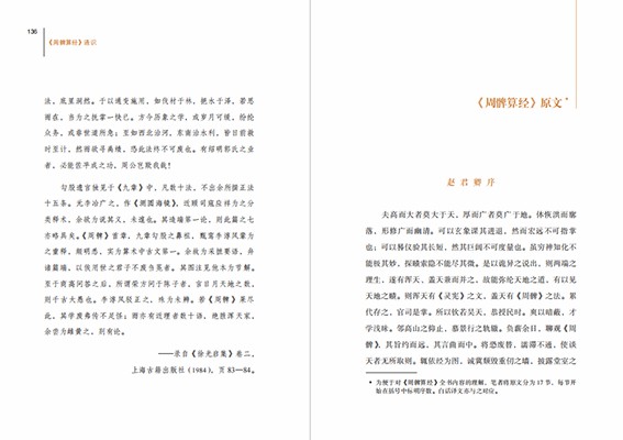 《周髀算经》是中国古代早期重要的数学和天文学经典,记载了许多数学和天文上的卓越成就,如勾股定理的发现和应用、盖天宇宙理论等,向来被视为奇书。千百年来,学者们作了大量的注释、猜测、考证和研究,众说纷纭,各有异同,更为理解此书带来了不小的难度。