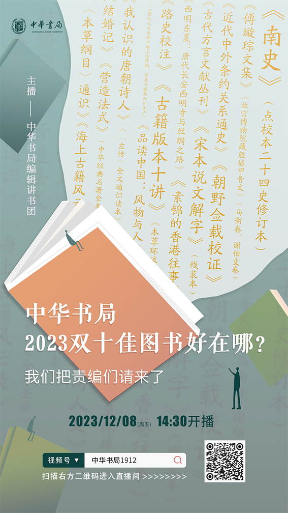 想了解书局双十佳图书的人,想在最短时间内领会这本书到底讲了什么,好在哪里的人,都欢迎您在本周五下午两点半来到中华书局直播间听一听,聊一聊。