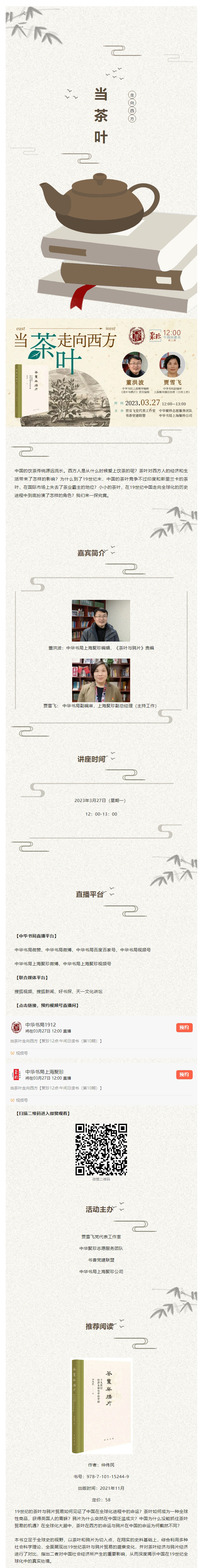 【已结束】27日12:00直播:当茶叶走向西方丨聚珍12点·午间日读书(第11期)活动预告