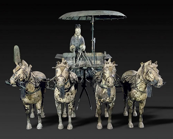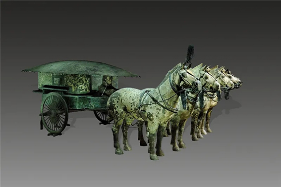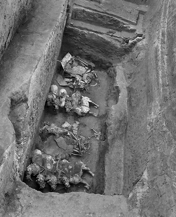 这里提到的秦始皇的御用车辆,诸如金根车、副车、辒辌车等早已不存,古简的记述又甚为简略,所以后世已难言其详了。九年前,始皇陵发现了夹在陶兵陶马中的上百乘车辆。这对于了解秦车有所帮助。但那全是木质兵车,且多朽毁,虽大体可依其痕迹复原,然而,仍不足以据之了解秦代帝王的车制。正当学术界为之遗憾的时候,考古学家们在始皇陵找到了一个大型陪葬坑,可以说是秦始皇的车马库。这是中国考古的又一惊人的重大成就。