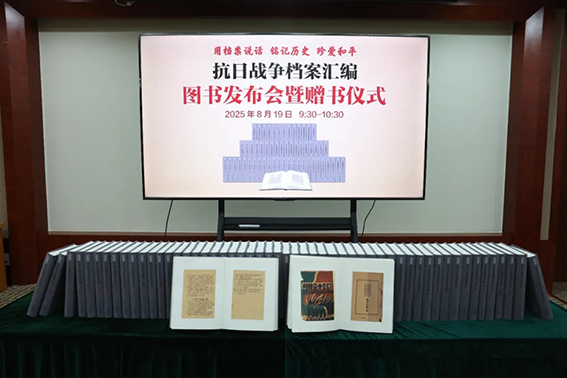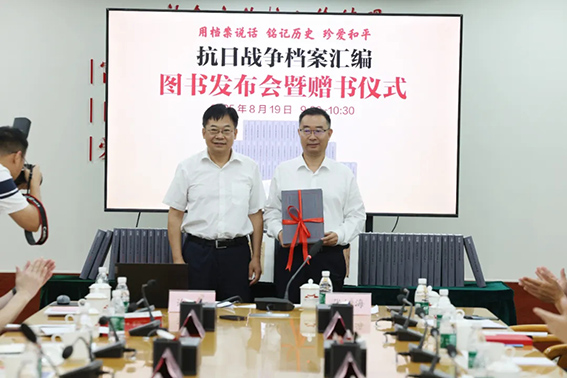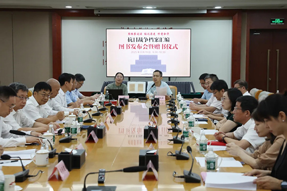 为纪念中国人民抗日战争暨世界反法西斯战争胜利80周年,由中国出版集团中华书局主办的《抗日战争档案汇编》图书发布会于2025年8月19日在中国人民抗日战争纪念馆召开。中国出版集团有限公司副总经理、党组成员张宏,中央档案馆国家档案局副馆局长李洁鸿,中华书局执行董事、党委书记肖启明,国家档案局、地方档案馆有关同志出席本次活动,会议由中华书局副总编辑张继海主持。