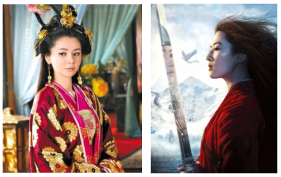 ▲ 电视《隋唐英雄》张丽华(张瑞希 饰)与电影《花木兰》(刘亦菲 饰)