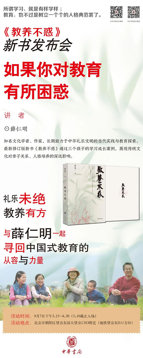 2025年秋,台湾知名文化学者薛仁明携其最新修订版《教养不惑》亮相北京,通过三个孩子的学习成长案例,展现传统文化对亲子关系、人格培养的深远影响。