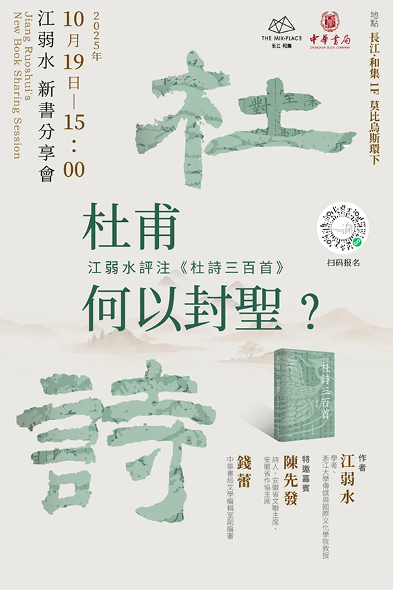 10月19日下午15:00,著名学者江弱水将带着新书《杜诗三百首》来到长江和集。
