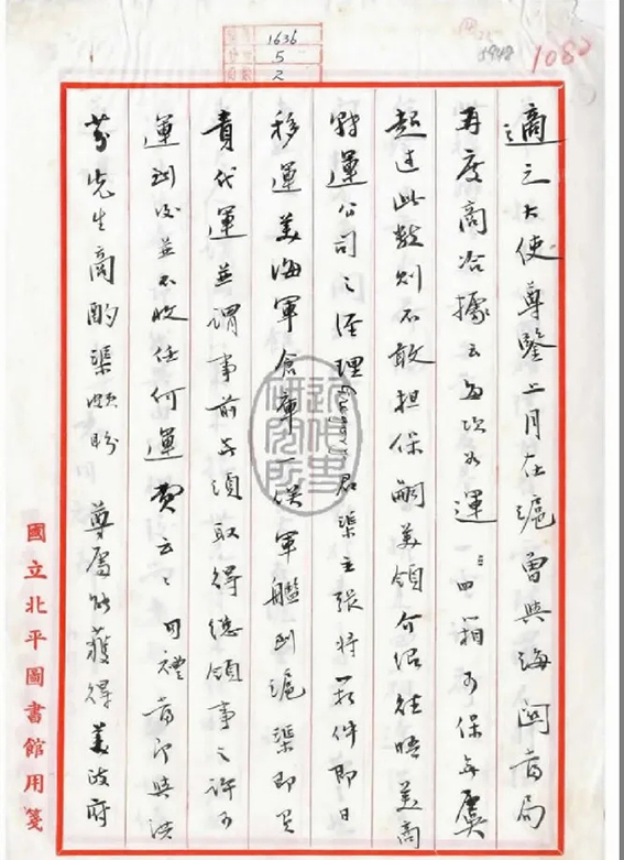 1939年3月16日,第十八路集团军重庆办事处周怡致函袁同礼。刘梦妮摄