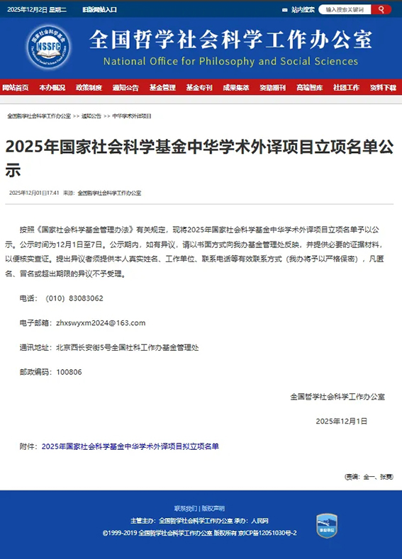 2025年12月1日,全国哲学社会科学工作办公室公布了2025年《国家社科基金中华学术外译项目立项名单》,中华书局共获批14个项目,涉及英语、日语、韩语、西班牙语等版本。