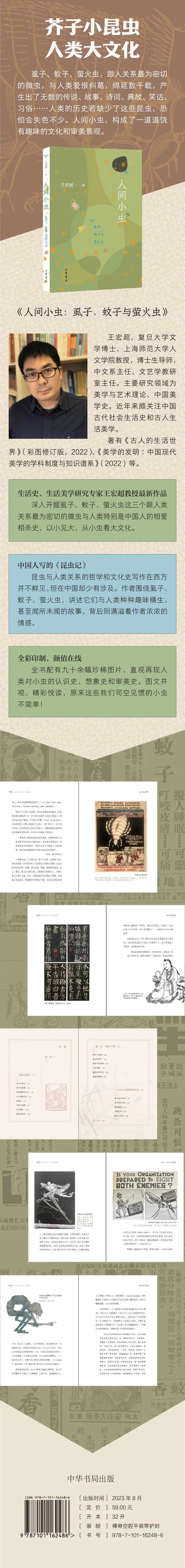晋代傅巽的《蚊赋》说蚊子:肇孟夏以明起,迄季秋而不衰。众繁炽而无数,动群声而成雷。肆惨毒于有生,乃餐肤体以疗饥。妨农功于南亩,废女工于杼机。从夏至秋,飞动无数,声音如雷,残害众生,滋扰生灵,实在找不出比蚊子更令人可恼可恨的生物了。唐代诗人吴融的《平望蚊子二十六韵》,简直就是一部人类遭受蚊子困扰的血泪史:天下有蚊子,候夜噆人肤。平望有蚊子,白昼来相屠。不避风与雨,群飞出菰蒲。扰扰蔽天黑,雷然随舳舻。利嘴入人肉,微形红且濡。振蓬亦不惧,至死贪膏腴。舟人敢停棹,陆者亦疾趋。南北百余里,畏之如虎䝙。蚊子白昼相屠,风雨无阻,来时遮天蔽日,人人避之不及,如遇虎䝙,简直就是丧尸片中才有的场景。(选自王宏超《人间小虫:虱子、蚊子与萤火虫》,中华书局2023年版)