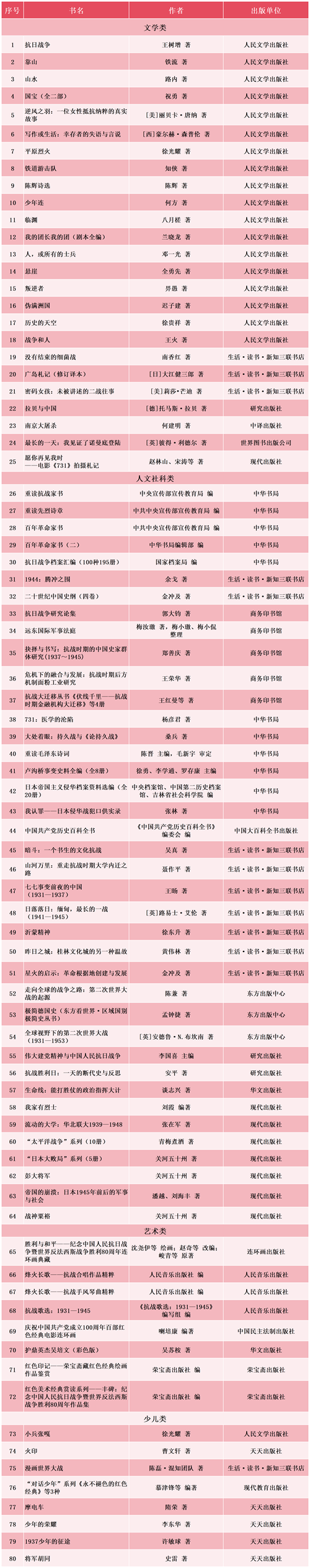 在纪念中国人民抗日战争暨世界反法西斯战争胜利80周年之际,中国出版集团统筹旗下各出版单位,推出了一系列兼具史料价值与社会意义的重点出版物,全方位展现抗战历史、传承伟大抗战精神。集团将纪念中国人民抗日战争暨世界反法西斯战争胜利80周年作为年度主题的重中之重,提前布局、精心部署。围绕抗战主题,集团各出版单位注重准确把握抗战精神的核心内涵,从深刻反映中国共产党的中流砥柱作用、全景展现全民族抗战的壮阔历程、着重凸显中国战场的世界贡献三个历史维度出发,以系统性思维统筹出版工作,构建抗战主题立体化出版格局,使抗战历史的呈现更加全面、客观、深刻。今年以来,已出版《抗日战争档案汇编》《胜利与和平——纪念中国人民抗日战争暨世界反法西斯战争胜利80周年连环画典藏》《抗日战争研究论集》《暗斗:一个书生的文化抗战》等一批重点新书。在此基础上,加以遴选近年出版的抗战主题重点图书,推出中国出版集团“纪念中国人民抗日战争暨世界反法西斯战争胜利80周年”主题出版推荐书单,以80种抗战主题好书向抗战历史和先烈致敬,助力伟大抗战精神在新时代薪火相传!