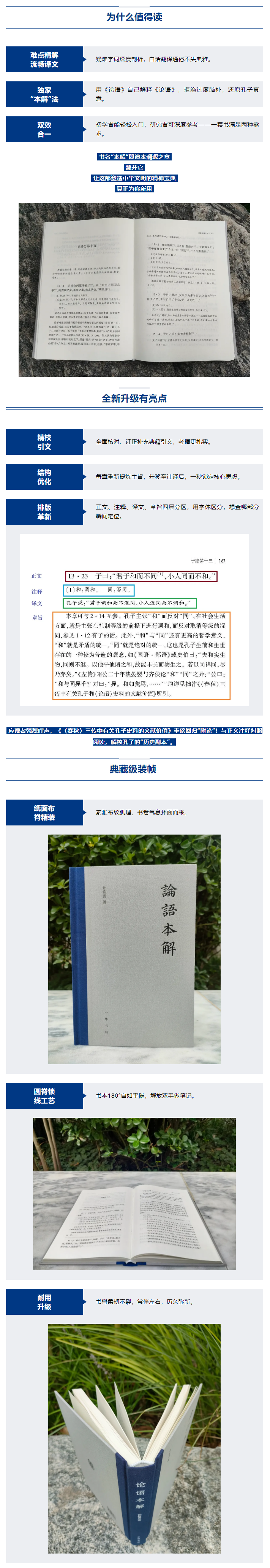 《论语本解》全新版上市《论语》——这部穿越两千年的智慧宝库,藏着孔子与弟子谈修身、为政、求学的思想火花。它不仅是儒家的“人生指南”,更是读懂中华文化基因的钥匙。而孙钦善教授的《论语本解》,以“用《论语》本身注解《论语》”的独到方法,剥开层层误解,让经典原文自己说话。翻开它,古老箴言将如清泉般透彻涌流,照亮当下生活的迷茫。《论语本解》自2008年出版即获学界与读者双重认可,更荣获教育部人文社科优秀成果奖!权威媒体纷纷点赞:《光明日报》称其“注释如清泉洗去误读尘埃”,《中华读书报》赞作者“以文献学家之手,串起散落的智慧珠链”。
