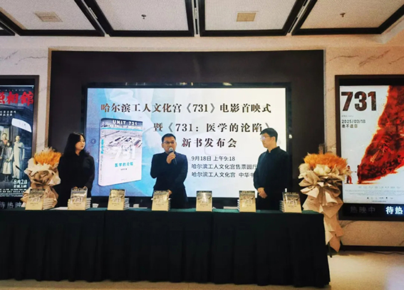9月18日,在这个承载着厚重历史记忆的特殊日子,《731》电影首映、《731》新书首发、《731》读书会等系列活动在哈尔滨工人文化宫隆重举行。活动以“选择这一天,回到历史原点”为主题,分别于9月18日当天上午、下午有序开展,众多专家学者、读者观众齐聚,共同回溯那段沉痛历史,传递铭记真相、守护和平的坚定信念。上午9时,防空警报响彻哈尔滨城市上空。9时18分,哈尔滨工人文化宫2号楼一层电影城迎来首场活动——《731》电影首映式暨《731:医学的沦陷》新书发布会,该活动由哈尔滨工人文化宫与中华书局联合主办。