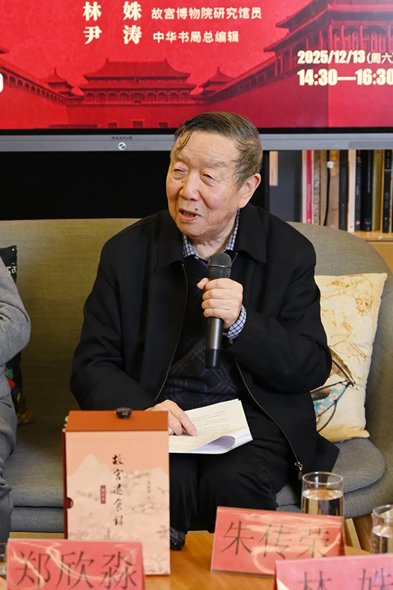 他同时表示,《故宫退食录》增补本是跨学科研究方法的典范。朱家溍先生的研究涉及书法,名画,碑帖,珐琅,瓷器,掐丝珐琅,漆器,木器,图书,古砚,古建筑,明清室内装修陈设,园冶,明清历史,戏曲史,饮食等诸多门类,这种百科全书式的研究格局本身就是跨学科研究的典范。“更重要的是,朱家溍在研究中始终坚持多学科融合的方法。例如,他通过对宫廷家具的研究来解读古代礼仪制度,通过对碑帖的研究来考辨文化交流脉络,通过对戏曲服饰的研究来探讨清代宫廷文化。这种研究方法启发了后来学者突破单一学科的边界,形成‘文物—制度—社会’的跨学科研究框架。”“在我提出故宫学学术概念过程中,朱先生著作的这一特点对我产生了十分重要的影响。故宫学的核心就是把故宫看作一个文化整体,提倡把古建筑,文物藏品与宫廷历史文化的相结合,就是要打破学科界限,进行跨学科研究。因此,我是感恩《故宫退食录》的,感恩朱家溍先生的。”郑欣淼先生说道。朱传荣女士分享了搜集、整理父亲遗稿的经过,她说:“父亲去世以后,在整理书稿的过程中,我一点一点地走近他,更熟悉他,这个过程不容易,但是又觉得挺幸福的,对他的了解更多了。”并谈到:“北京是父亲自小生长在其中也特别热爱的城市,有很多相关的内容他记录下来,并且还要更正别人的误解(如收入新版《故宫退食录》的《老北京俗语正误》)。另外,他像周围的几个朋友一样,如王世襄先生、刘曾复先生、吴小如先生,都是除了自己的正业,有特别喜欢玩的东西,他们像对自己的专业一样,认真深入地去研究,不去以讹传讹或者是有所攀附。”
