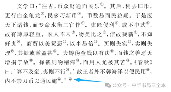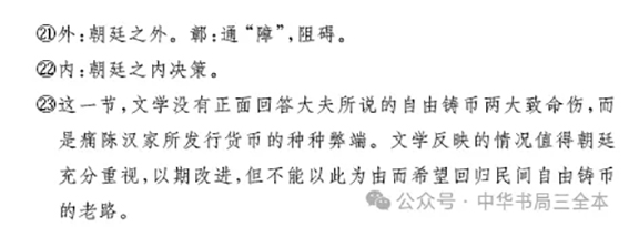 “三全本”《盐铁论》的注释,原已相当丰富,此次修订,增加了大量内容,比如说,图中所示注释,均在原版基础上有添加,尤其是第④条,把“义利之辨”这个重要命题以按语方式讲述清楚,也就让读者对于接下来围绕这个问题展开的言语交锋,有了一个认知锚点: