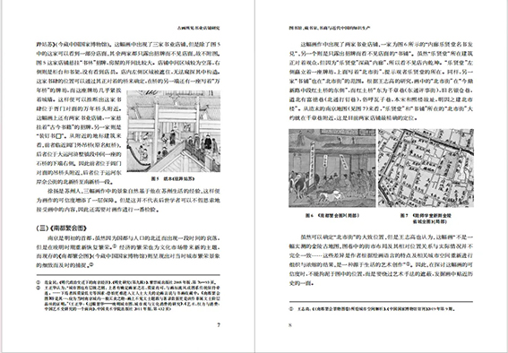 以上几种聚焦于图像的研究十分具有启发性,我们可以沿着这个思路,探寻图像对于书籍史研究的更多可能。而本文所要讨论的,则是古画中所展现的书业店铺。中国古代至今留下的大量画作中,有一类专门展现城市或街肆的画作,学者称之为“街景画”。这类画作中常出现图书行业的店铺,将这些店铺的图像搜集起来,则可以从一个不同的视角审视中国传统社会中书籍的生产、流通与消费。其实之前已经有学者讨论过个别画作中的书业店铺,或者将画中书业店铺的形象直接应用于书籍史的研究。前一类研究例如王宏钧、刘如仲用《南都繁会图卷》中的“乐贤堂名书发兑”“书铺”等店铺证明了明后期的图书刻印行业显著发展,范金民以《姑苏繁华图》(即《盛世滋生图》)中的“大雅堂书坊”为线索讨论了盛清时期苏州刻书、印书市场的兴盛。后一类研究比如戚福康引用题仇英绘《清明上河图》中的“集贤堂”讨论宋代的书坊,施晓兰引用《盛世滋生图》中的“大雅堂书坊”形象讨论明清苏州书坊的品牌优势。