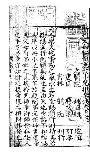 新刊太乙秘传急救小儿推拿法,明万历书林刘龙田乔山刻本(2)