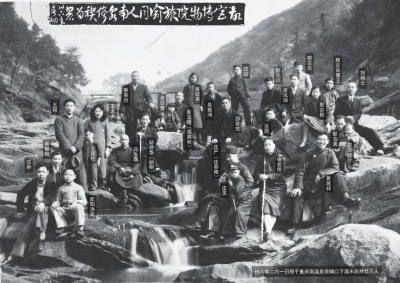 战争中的图像资料本来不多,经过一个甲子的种种变故就更少。协助庄灵先生出版《前生造定故宫缘》的过程中,得到大批保存完好的图像,为这段历史提供了珍贵的原始资料。其中被称为南温泉留念的大合影就是庄严先生家藏的,这张合影发表较早,流传很广,最初除去那先生庄先生两家人,叫不上名字的人很多。2010年筹备南迁史料展览过程中,庄灵先生再次提供原照相,正反两面高清扫描之后,看见了照片背面庄严先生特意记录下来的意想不到的信息——所有的拍照者的姓名,还原了那一刻的历史原貌。因此,在故宫南迁史料展中,二十八个合影者才第一次完全标注了姓名。