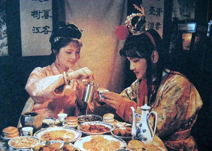 《红楼梦》里为人津津乐道的“聚餐”至少有两次:一是林黛玉刚进贾府的第一顿饭,那顿饭“连一声咳嗽不闻”,黛玉小心翼翼地学豪门餐桌礼仪,改了饭后“过一时再喝茶”的习惯;二是刘姥姥二进荣国府得了贾母眼缘,嬉游大观园,在缀锦阁吃酒行令的那顿饭,刘姥姥以“老刘老刘,食量大如牛。吃个老母猪,不抬头”的喜剧效果让黛玉笑岔了气。两顿饭可谓一静一动,一庄一谐。其实,还有一顿不同寻常的聚餐在宝黛钗第一次聚首时上演了。