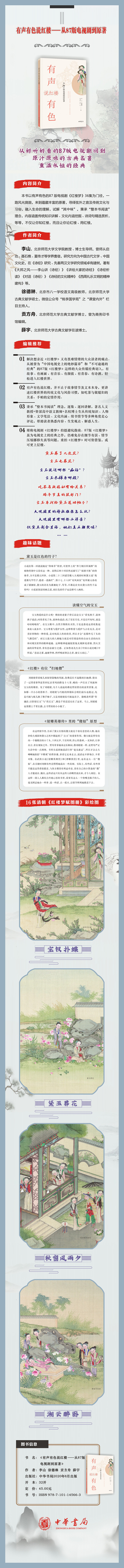 对谈结合中华书局出版的李山、徐德琳、贡方舟、薛宇著《有声有色说红楼——从87版电视剧到原著》一书以及原著与87版电视剧,贴着文本讲,贴着剧情讲,有故事、有画面、有音乐、有颜值、有青春、有诗酒,轻松进入红楼世界。从好听好看的87版电视剧回到原汁原味的古典名著,开启重温经典之旅。