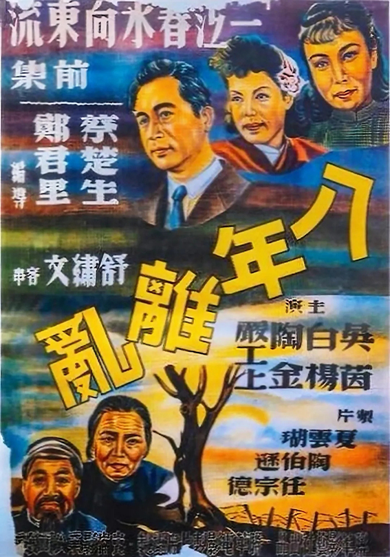 1947年上映的中国电影《一江春水向东流》讲述了这样的故事:抗战爆发,张忠良因参加抗战救护队离开了上海,妻子李素芬在沦陷区照顾婆婆和儿子抗生。张忠良在重庆结识了王丽珍并与其同居。抗战胜利后,张忠良回到上海,并与王丽珍的表姐何文艳关系密切。因此张忠良分别有了“沦陷夫人”、“抗战夫人”和“胜利夫人”。李素芬因生活贫苦而在何文艳家里做女佣。在何文艳举行的一次宴会上,李素芬认出了丈夫张忠良,并得知了张忠良与王丽珍和何文艳的关系。李素芬将实情告诉了婆婆,婆婆带着李素芬和抗生找到张忠良问罪,但张忠良仍徘徊在王丽珍和何文艳之间,绝望中的李素芬跳入了滚滚江水中。该影片上映之后,连续放映时间长达3个月之久,观影人数达到了70万余,创下了1949年前国产电影的最高上座记录。(经先静:《社会史视野下的〈一江春水向东流〉》,《电影文学》2011年第4期,第84页。)