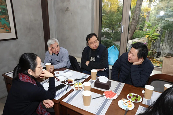 书局餐厅中,茶香满室,暖意融融。书架上,书局近期出版的各类佳作整齐排列,既有厚重的古籍整理本,也有精深的学术专著,还有面向大众的普及读物。编辑与作者们三五成群,或叙旧闲谈,笑语不绝;或就书稿进展、学术议题深入交流。