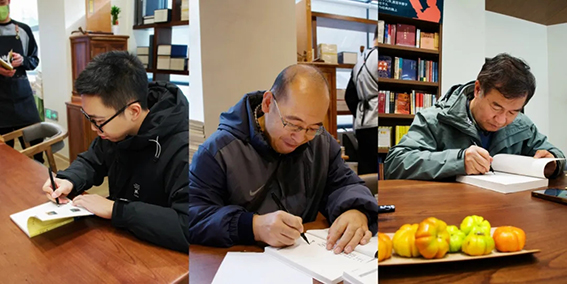 刚刚完成了升级改造的伯鸿书店古朴静雅、清幽舒适,吸引了多位作者驻足流连。作者们在这里为自己的作品签名、钤印,这些珍贵的签名本已经摆上书店的柜台,等待着与读者结缘,延续一段以书为媒的温暖传递。