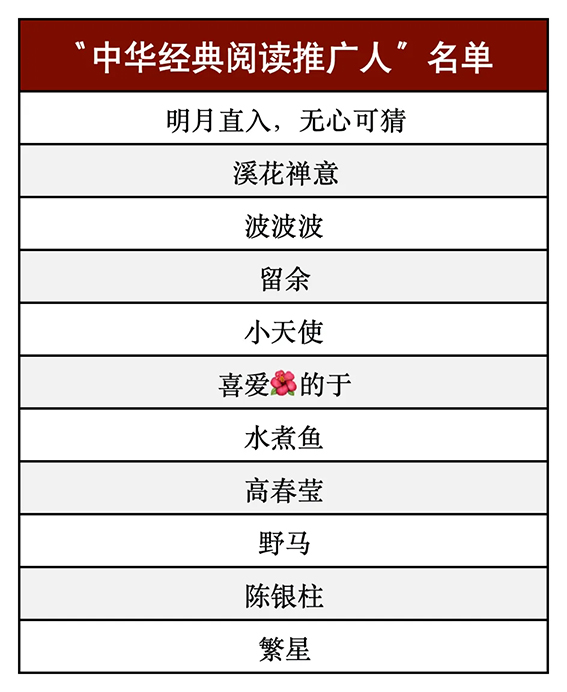 “中华经典阅读推广人”名单