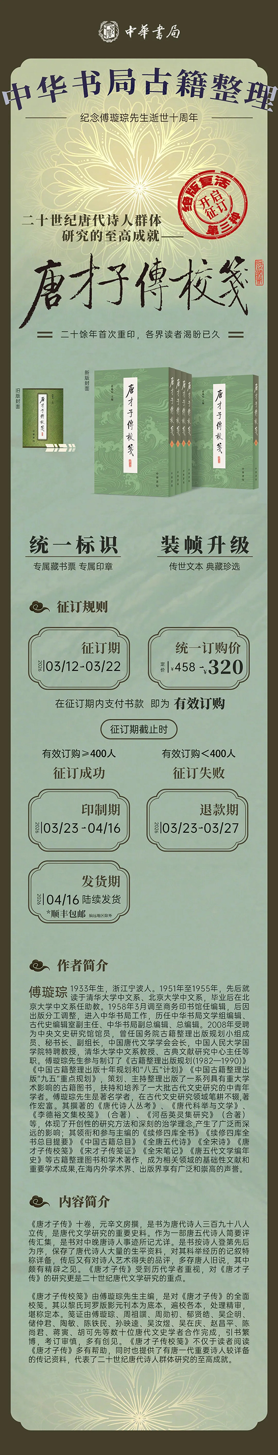 中华书局【绝版复活】项目,是专为市场长期缺货、溢价严重的经典好书打造的重印机制。以读者需求为核心,通过预先征订精准核定印刷数量,让有价值的绝版书告别「一书难求」,重新回归大众视野。目前项目前两本经典已圆满收官,收获读者满满好评,而呼声居高不下的《唐才子传校笺》,终于迎来复活时刻!