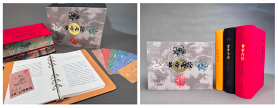 这套定制版的函套设计堪称点睛之笔:以五行(金木水火土)为纲,对应五方(东南西北中)、五色(青白红黑黄)与五神兽(苍龙、白虎、朱雀、玄武、黄龙),函套四面更细致呈现五行与人体的关联——如东方属木,对应肝、目、酸味等,直观诠释“天人相应”。