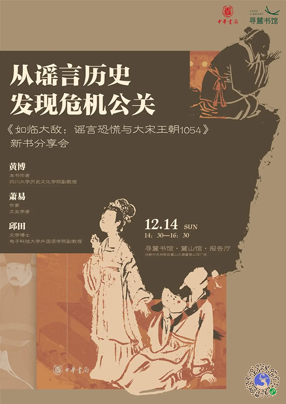 12月14日(周日)14:30—16:30,本书作者黄博将与学者萧易、邱田,带领我们一同深入历史现场,探讨谣言如何成为社会情绪的晴雨表,而古代权力机构又如何在这场“没有硝烟的战争”中展开危机公关。