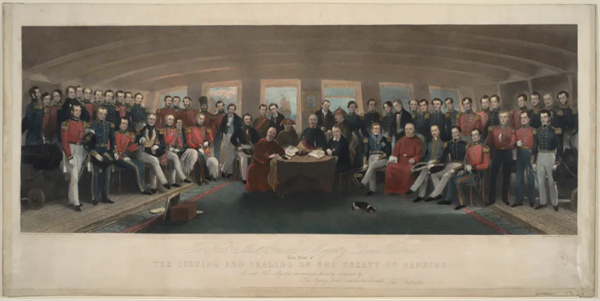 而在鸦片战争期间,郭实猎能在宁波、镇江等地维持地方秩序,充当交涉中介,甚至为英国人搭建情报网络,这些活动确实影响了战争进程。所以,在《南京条约签订图》上,这位普鲁士人才会被绘制在图像的中心位置。这也是英国人对他在战争中作用的认可。