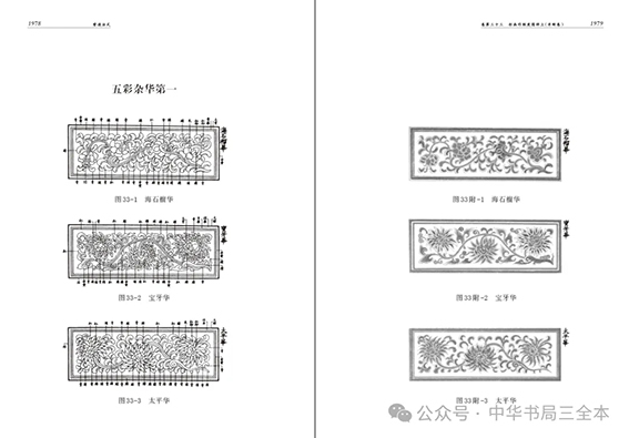 卷三十三《彩画作制度图样上(并附卷)》的“五彩杂华”,让人得以一窥宋式营造中较高等级建筑彩画的基本做法。